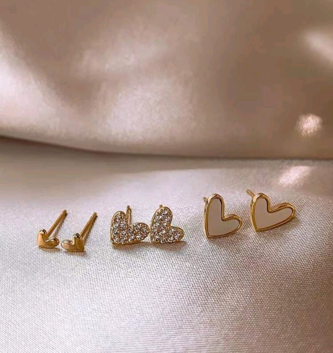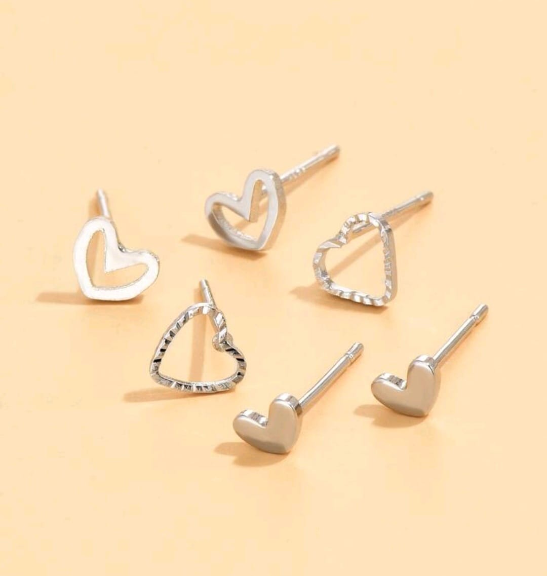2 x Open end Rings. Stainless steel Silver/Gold plated heart on round Charm Necklace, 6pc Heart stud Earing set — simple, special & symbolic - 💌 Inspirational Note – “A Beautiful Beginning”