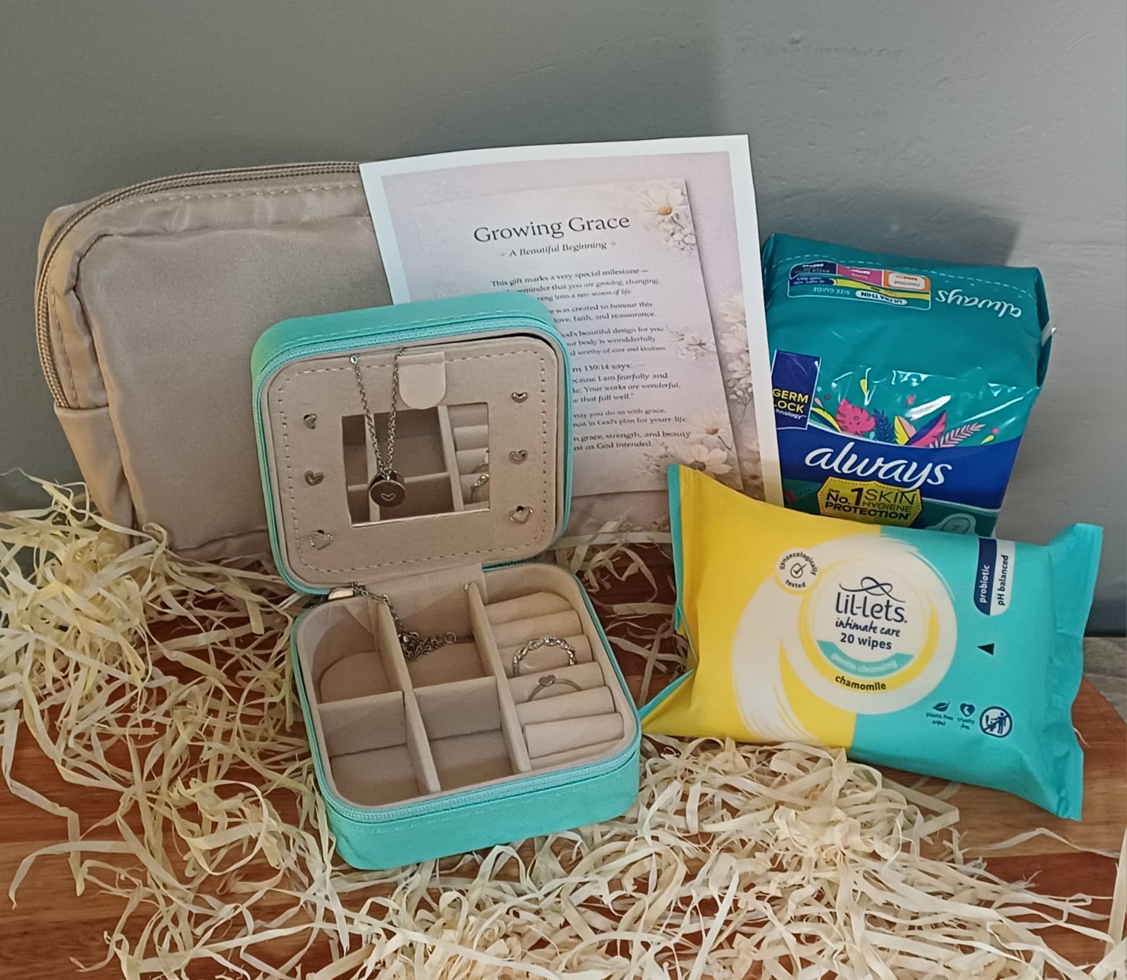The Growing by Grace Bundle is a thoughtful keepsake created to celebrate a very special milestone — a moment of growth, change, and becoming. It’s designed to gently support, encourage, and remind her that this new season is something to be embraced with confidence and grace 💕